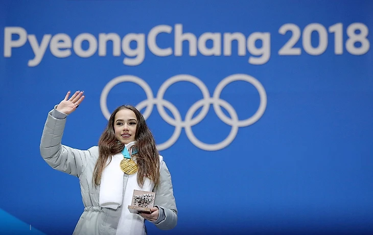 Церемония награждения Алины Загитовой на Олимпиаде 2018г.
