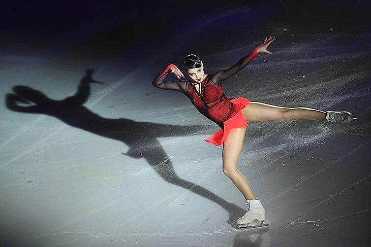 Наши фигуристки удивили в шоу перед ЧМ: Косторная с алой юбкой и прической из 1920-х, Трусова – возможно, с новой короткой