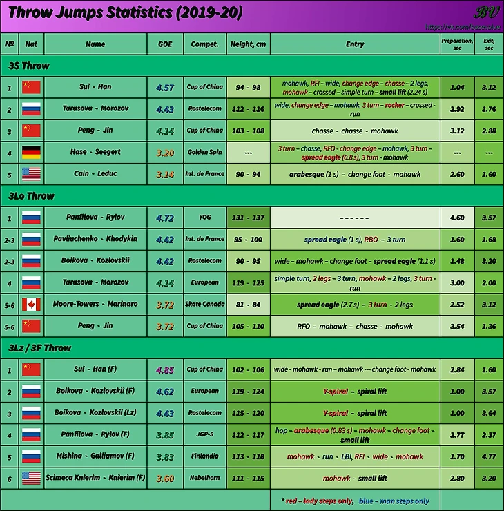 Этот пост - продолжение предыдущего, в котором мы посмотрели самые лучше подкрутки спортивных пар за первую половину сезона. В этом мы разберем лучшие выбросы в похожем формате. В ближайшее время возможно еще будет пост по параллельным прыжкам.