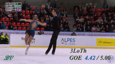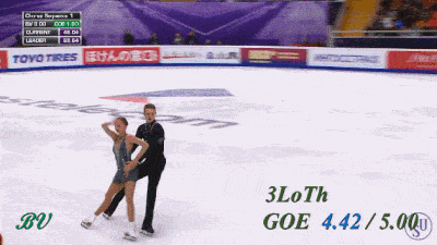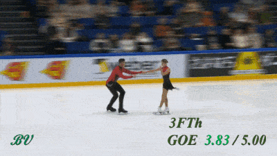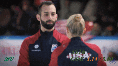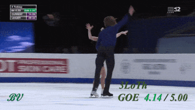 Поскольку это БК, то у нас опять все по-пижонски, с чемпионской подачей, экспрессивным выездом и уверенностью в завтрашнем дне. Даже тренер рад. Я бы сказал, что это более впечатляющий выброс, чем их же риттбергер из произвольной, но получил в итоге лишь на 1 сотую больше. Разница с риттом в высоте весьма не типичная, обычно у всех пар именно 3LoTh выше. Но может так случайно вышло, мы не смотрели все соревнования. Однако, по части высоты, довольно странно, что в ФГП IceScope вновь намерял 117 см в КП и только 99 см в ПП, хотя визуально вроде больших отличий не было.