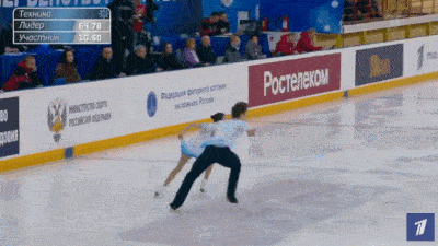 Выезд тут конечно супер затянутый, на полпрограммы, и смотрится эффектно, но кажется, как будто по скорости немного уступает Панфиловой на ритте и поэтому выглядит немного менее естественно. Впрочем, трудно сказать наверняка. Не у всех пар есть время на такие выезды. Но вряд ли это легко.