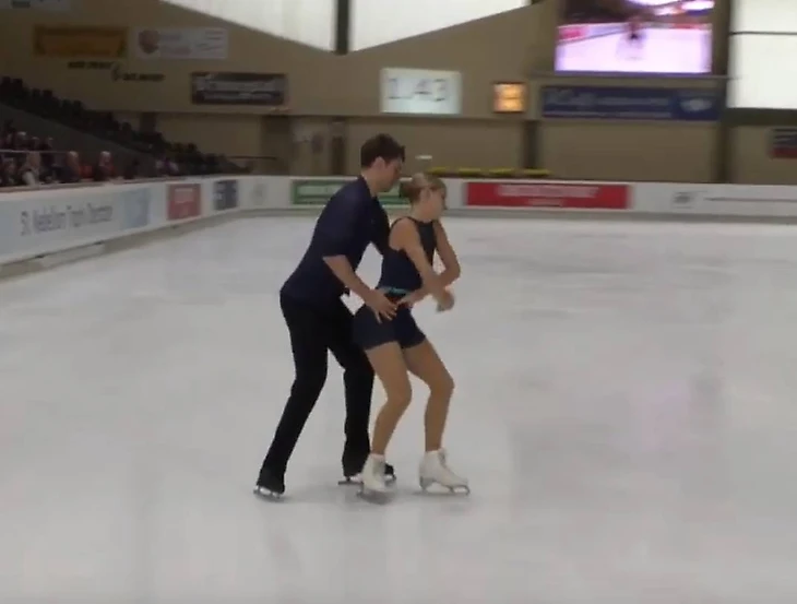 Супружеская пара вновь свои лучшие надбавки получила не Небельхорне. Но, по крайней мере, это не родная Америка, так что какие могут быть претензии. Заход весьма интересен, но, главным образом, конечно, поддержкой. Лишний раз свидетельствует о силовых качествах партнера. На мой взгляд, это не самая лучшая версия исполнения такого захода, вот эта вариация от Джеймс и Сипре смотрелась покруче. На мой взгляд. Но все равно, здесь это единственный такой вариант. Если вы видели еще что-нибудь похожее, напишите в коментах. Мы в истории парного не очень сильны, да и в этом сезоне скорее всего много интересного упустили из виду.