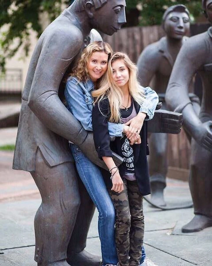 Тутберидзе и маленькая Женя Медведева. Шикарные образы, наверное, пока даже не в планах – на Этери обыкновенная серая куртка.