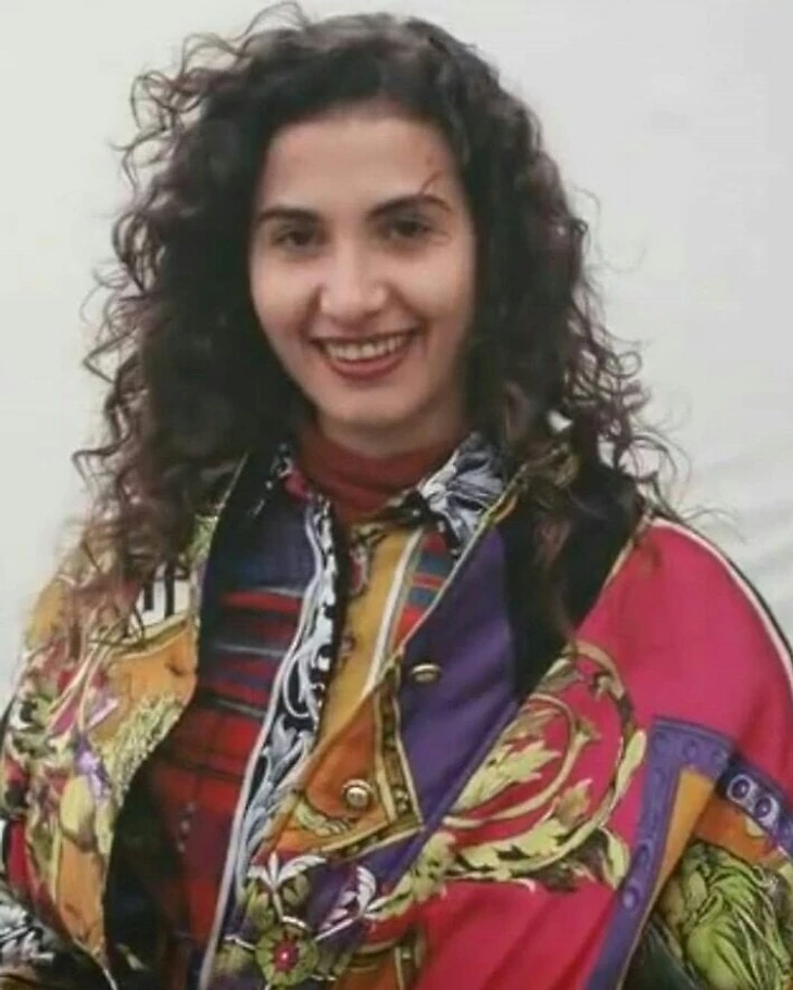 Молодая Тутберидзе: брюнетка в цветастой и многослойной одежде (мода 90-х). Кудри на месте.