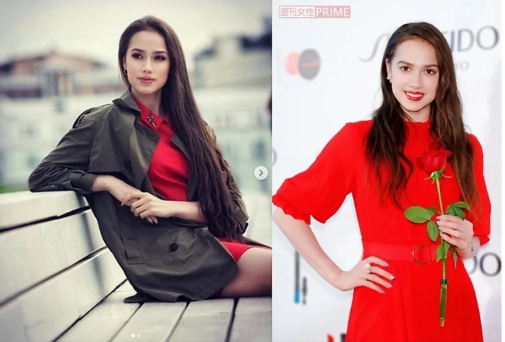 Фото в красном платье было сделано на полгода раньше, при объявлении её глобальным послом одной из старейших косметических компаний мира «Shiseido». В разное время «лицами» компании становились актрисы Анджелина Джоли и Дженнифер Коннели, а также бывшая первая ракетка мира Ана Иванович. По мнению руководства, Алина тоже сможет продвинуть новую линейку косметики среди молодых японцев. «Рада, что это произошло. Я выиграла золото Олимпиады, но хочу развиваться дальше и достигнуть совершенства. В этом наши пути с «Shiseido» совпадают». Кстати, само платье вроде как подарок от самих «Шисейдо».