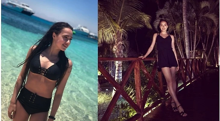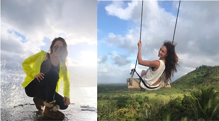 Второе фото выбрал из-за экзотических пальмочек и выдающейся длины ног Заги, интересно: из-за ракурса так получилось или благодаря платью. В общем, даже на отдыхе, в купальнике и легком платьице, Алина смотрится очень современно и стильно.