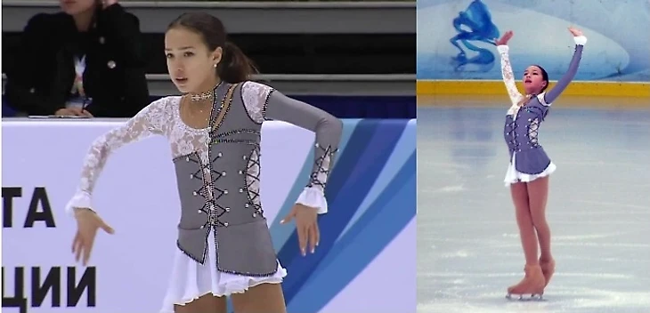 К первому взрослому сезону Алины его благоразумно создали (переработали) заново: украсили большим количеством узоров, сделав визуально «богаче» и убрали сетку, заменив на лямки. В итоге получилось шикарнейшее платье, достойное самой олимпийской чемпионки и первой ступеньки олимпийского пьедестала. Смотрится и сидит – идеально.