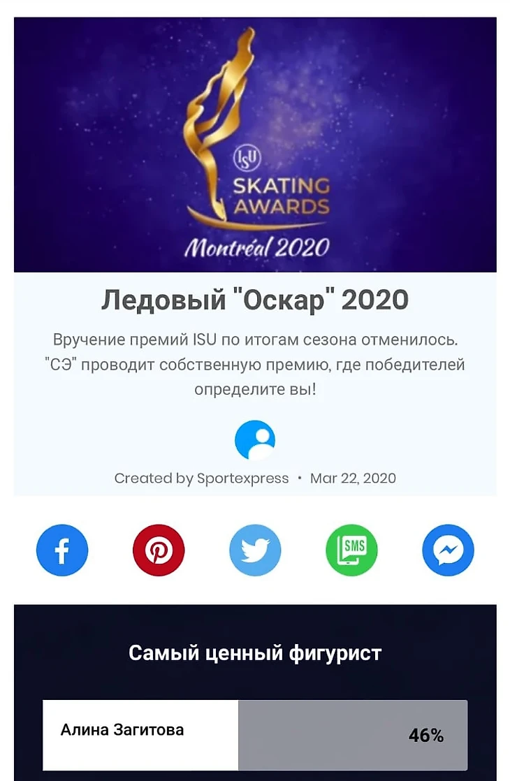 Как не вспомнить российскую версию ледового Оскара, где олимпийская чемпионка Алина Загитова взяла первые места во всех номинациях, в которых участвовала (не без нашей помощи, естественно). Итак, Алина получила своих виртуальных Оскаров, в номинациях (ссылка: Ледовый оскар):