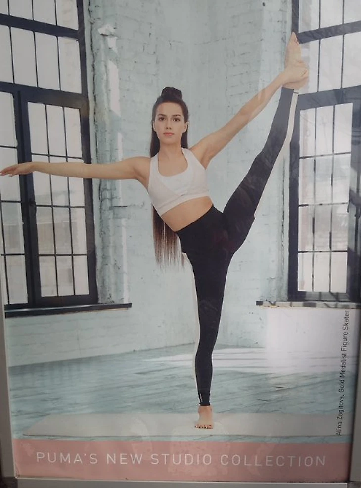 Кроме того, моя подруга, живущая в Чехии, сообщила мне, что этот же баннер с Алиной Загитовой с января 2020 года размещен в самом большом и крутом фитнес центре Праги (ccылка: balanceclub.cz), в зале йоги и пилатеса. Puma является спонсором этого клуба. По окончании карантина она обещала скинуть мне фото оттуда.