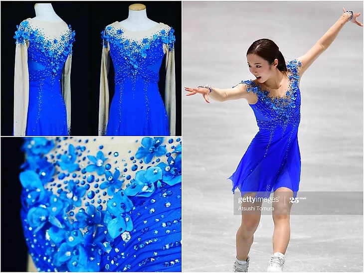 Евгения Медведева. У Жени в этом сезоне случилась, пожалуй, лучшая произвольная программа в карьере. И это так чудесно и правильно, что кимоно для гейши Сайюри шила именно Сатоми Ито. Насколько я помню, она даже сама предложила помочь Жене с костюмом и у них снова получился отличный тандем (раньше Сатоми сшила для Жени платье для показательного номера, года 4 назад). Точно можно было быть уверенными, что и запАх будет на правильную сторону и все тонкости национального костюма будут соблюдены.