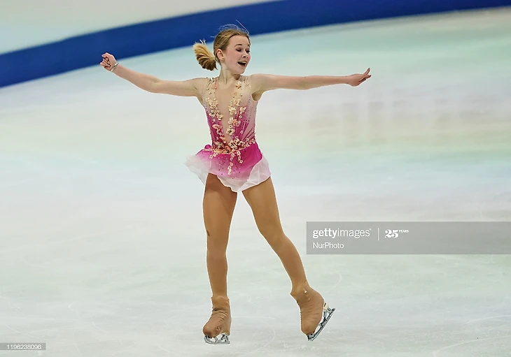 Сама успела забыть, кто это, пришлось по новой Финляндию Трофи пересматривать. Но для рейтинга платьишек абсолютно неважно, какие места занимает фигурист, если он хорошо одет. Корейская девочка как раз тот случай. Её платье вызывает у меня ассоциации с недозрелым бананчиком. Бананы и жёлтый цвет я люблю, особенно жёлтый цвет на фигуристах, потому что его редко используют (но не в этом сезоне).