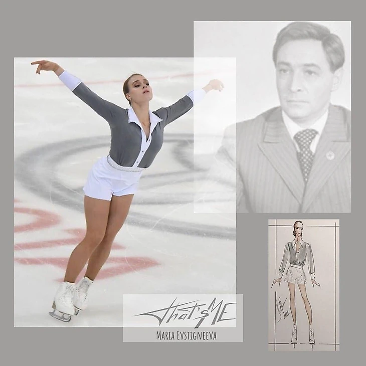 Сара каталась под «Ла-ла-ленд», поэтому чего далеко ходить за прототипом, он на поверхности. Но копировать платье Стоун дословно не стали, ограничившись ярким цветом. В фильме много ярких цветов, жёлтого в особенности, поэтому фантазия могла разгуляться.