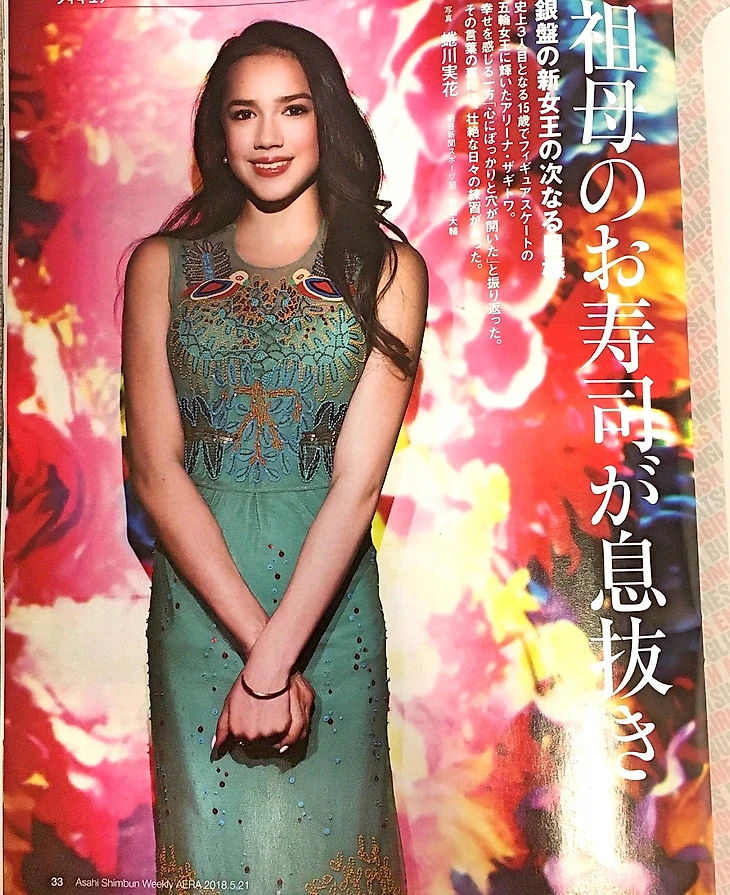 Также хотелось бы отметить фотографию Алины Загитовой для обложки японского журнала Aera в стилизованном под восточные традиции наряде. По признанию Алины цвет платья для этой фотосессии выбирала ее бабушка, наш ей поклон, безмерное уважение и благодарность за внучку