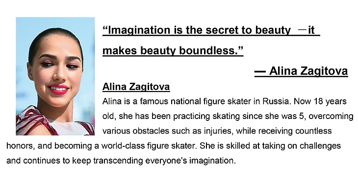 "Воображение - это секрет красоты, оно делает красоту безграничной", - Алина Загитова.