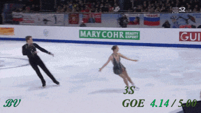 Очень близкие показатели по амплитуде, огромная высота и почти идеальная синхронизация. Пока лучшая за этот пост. Наверняка всей паре можно засчитать критерий высоты, потому что тройной сальхов на 47 см от Анастасии Мишиной - это дохрена весьма много по женским меркам, даже не напишу с ходу, кто может выше. У всех известных нам парниц и одиночниц 3S вроде не больше 44 см.(если что, я знаю 6 парниц и 5 одиночниц). С другой стороны, заход здесь не очень сложный, даже те шаги, что идут до длинной паузы, позже упростили.