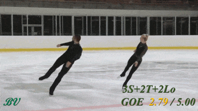 Каскад 2A+1Lo+3S от Артемьевой и Назарычева, получивший в среднем 1.86 в произвольной программе 4 этапа ЮГП. С очень хорошим синхроном.