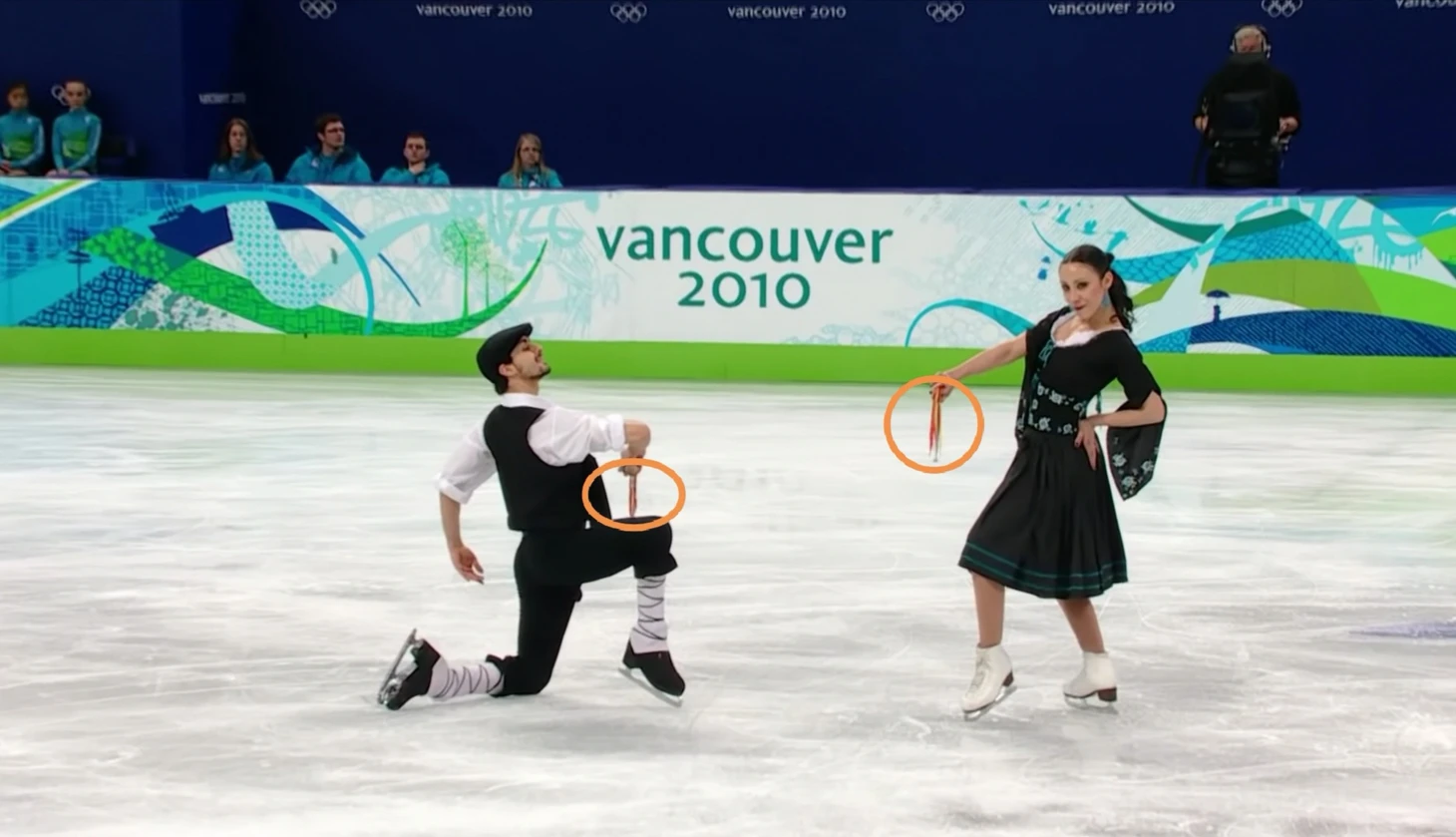 Подводя итог поста нельзя не отметить, что в современных танцах на льду осталось очень мало фантазии. Может, в этом виновата система оценивания, ведь до изменений 2010-ого и музыка была самой разной и нестандартной, и изюминок в технике было гораздо больше, и даже небольшой реквизит был разрешен (на фото).