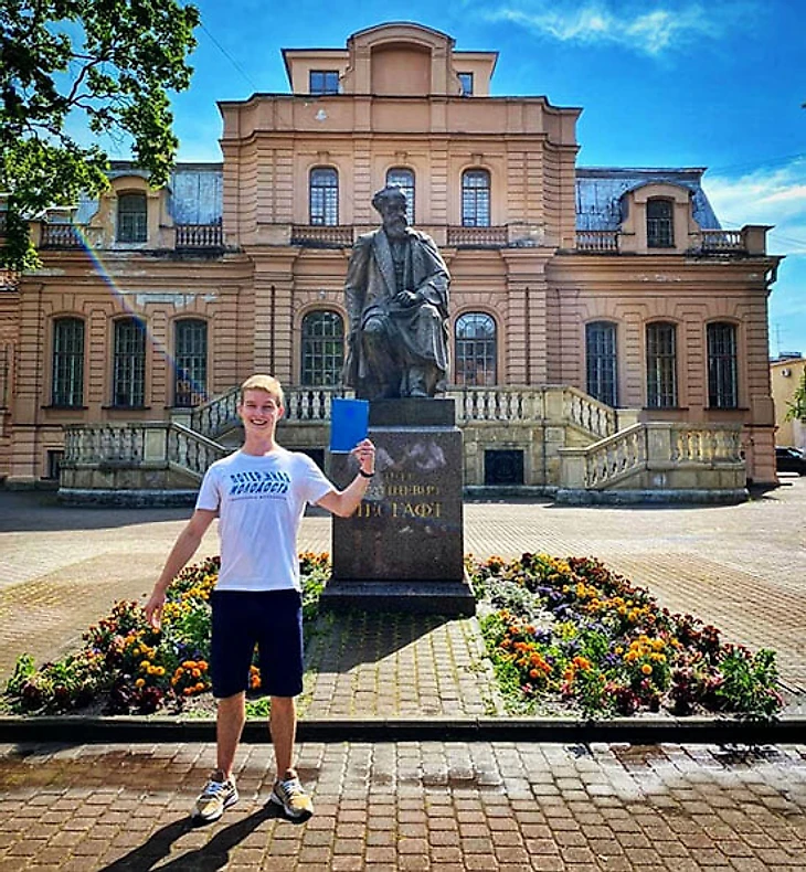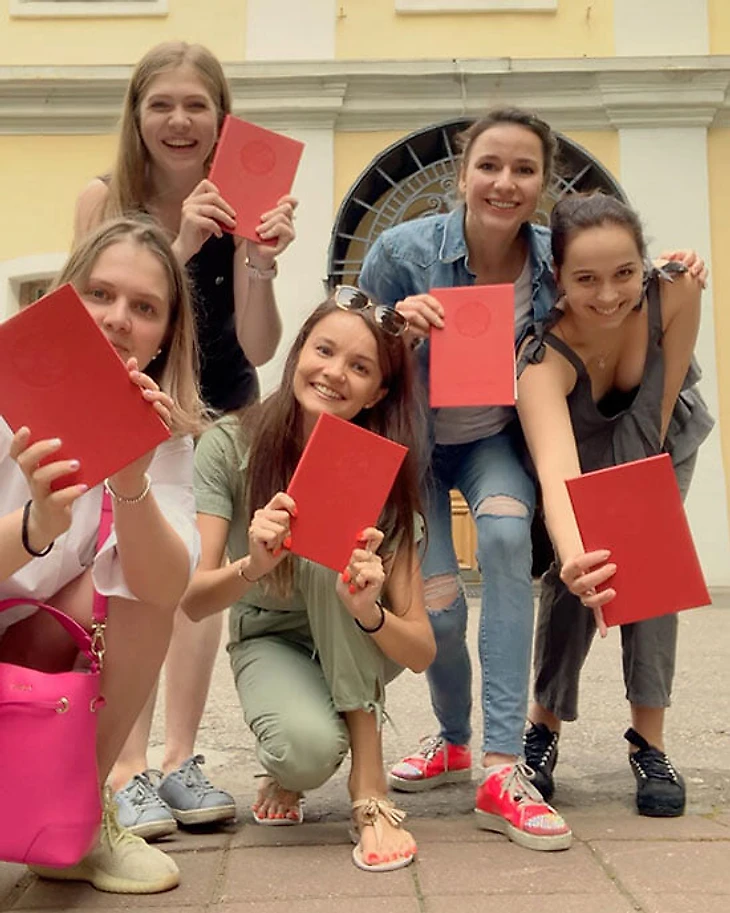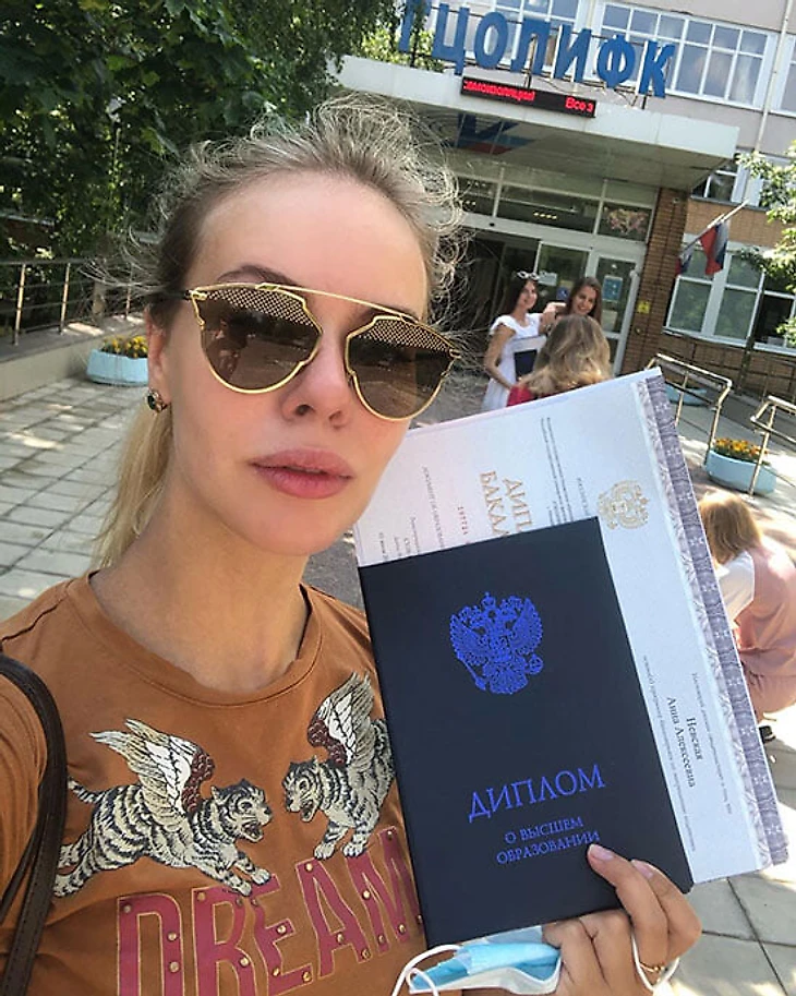 Вместе с Туктамышевой дипломы получили Андрей Лазукин и Дмитрий Ялин. Артем Лежеев тоже выпустился из НГУ им. Лесгафта. И отметил окончание вуза фотографией рядом с корпусом университета в футболке с надписью «потерянная молодость» и веселым стихотворением.