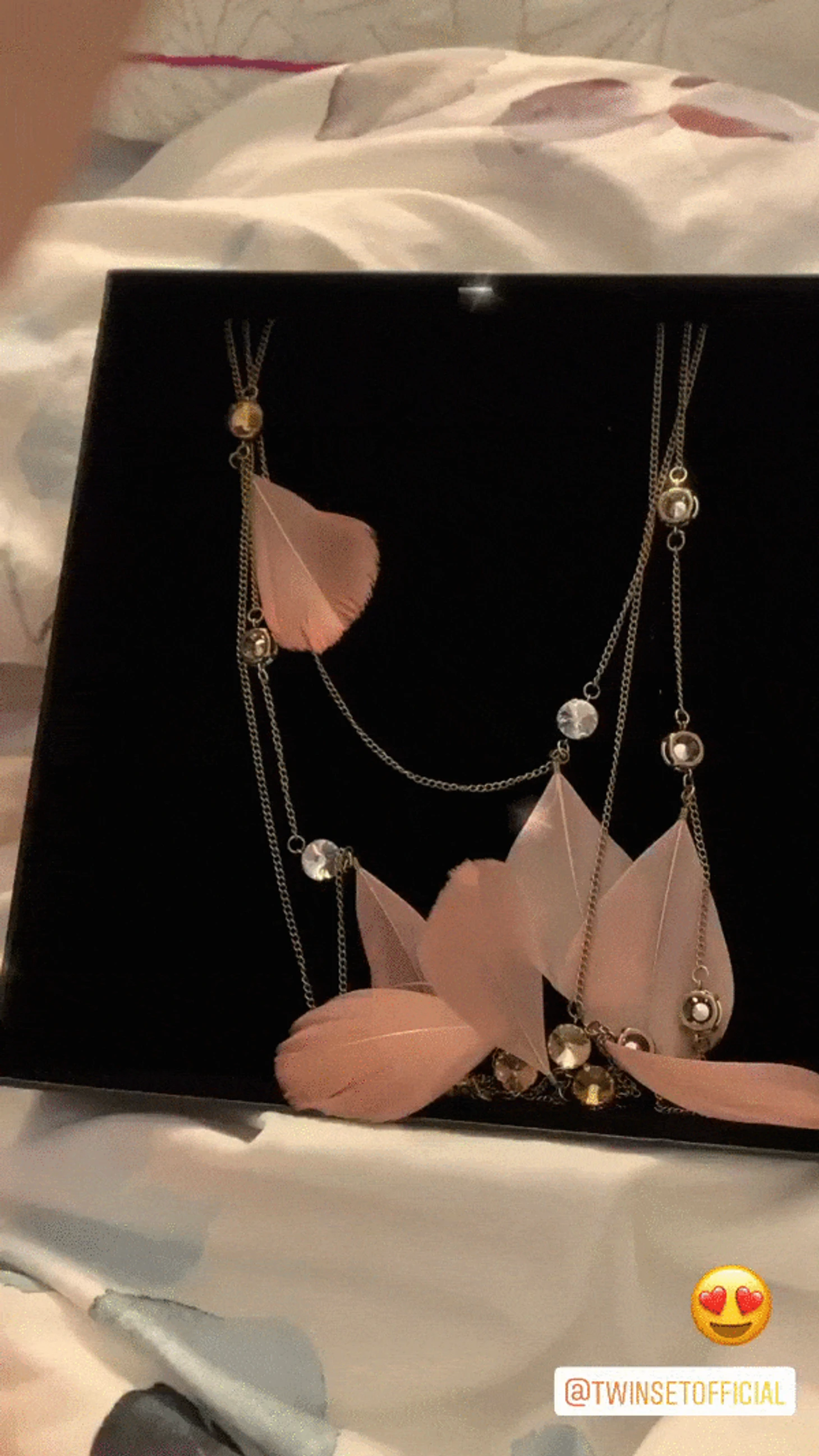 В тексте также упоминается благодарность бренду Twinset Milano за предоставленный наряд, а также этот бренд тегнут в посте и упоминается в сториз с новым украшением.