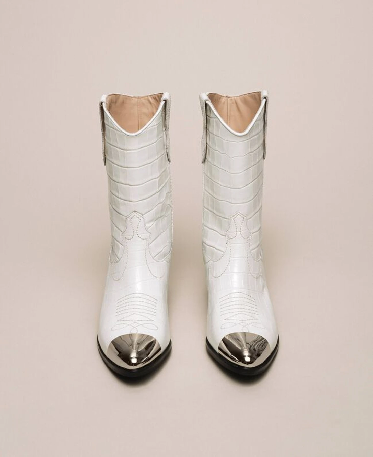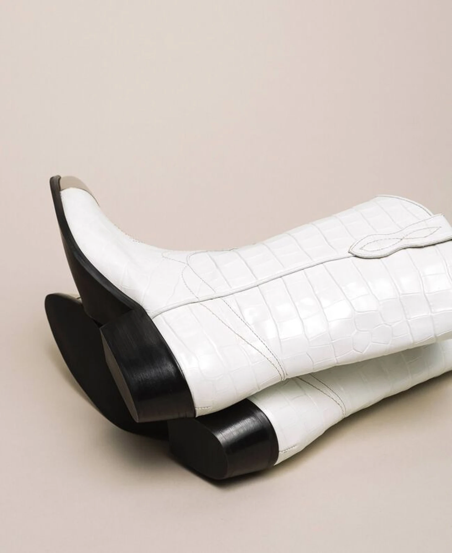 Сапоги оказывается выполнены под крокодиловую кожу и с узором из стежков.