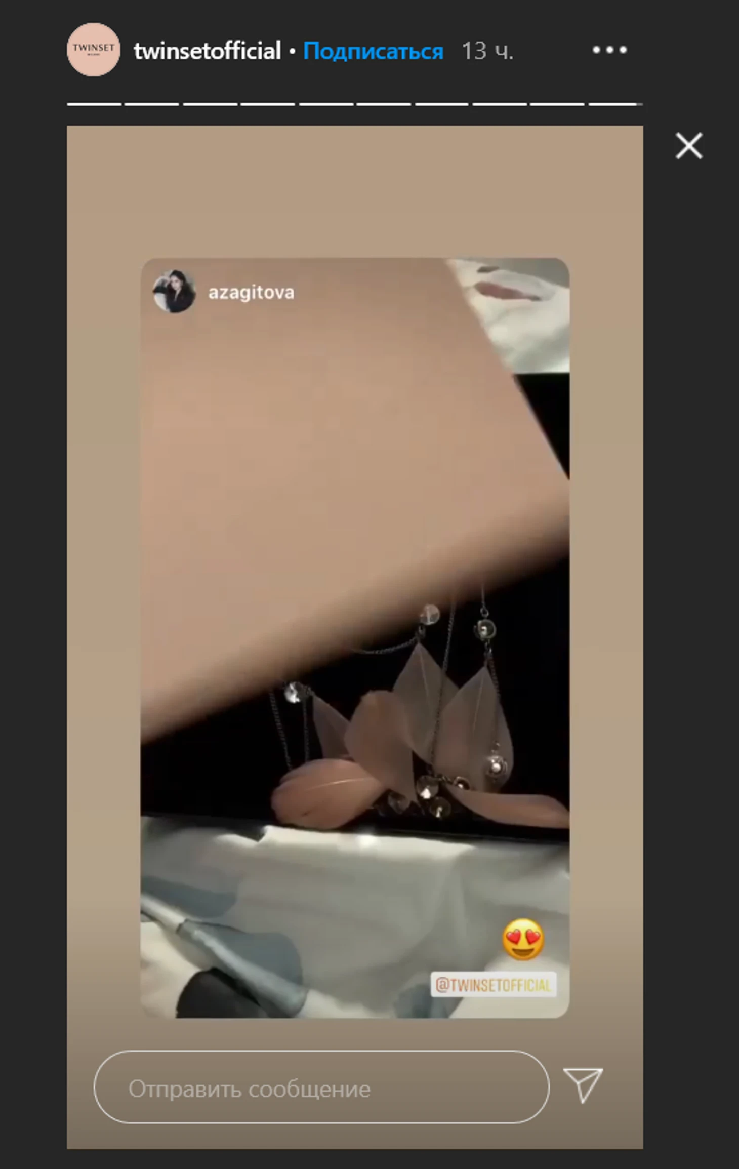 В свою очередь официальный аккаунт Twinset Milano репостит в сториз оба этих материала.