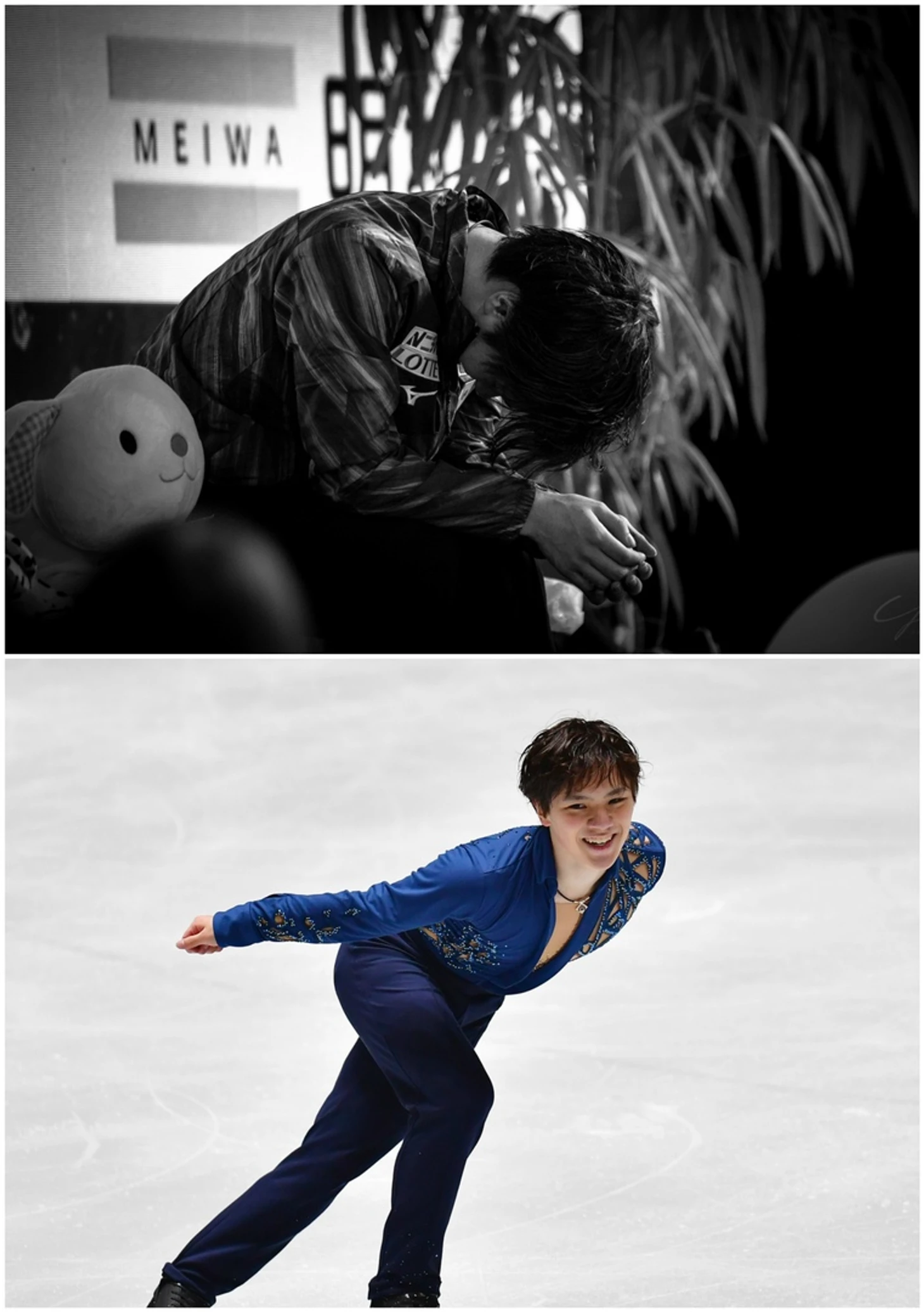 Шома Уно в Гренобле (наверху: фотография @yawning_shoma) и на национальном чемпионате (внизу; фотография Olympic channel)