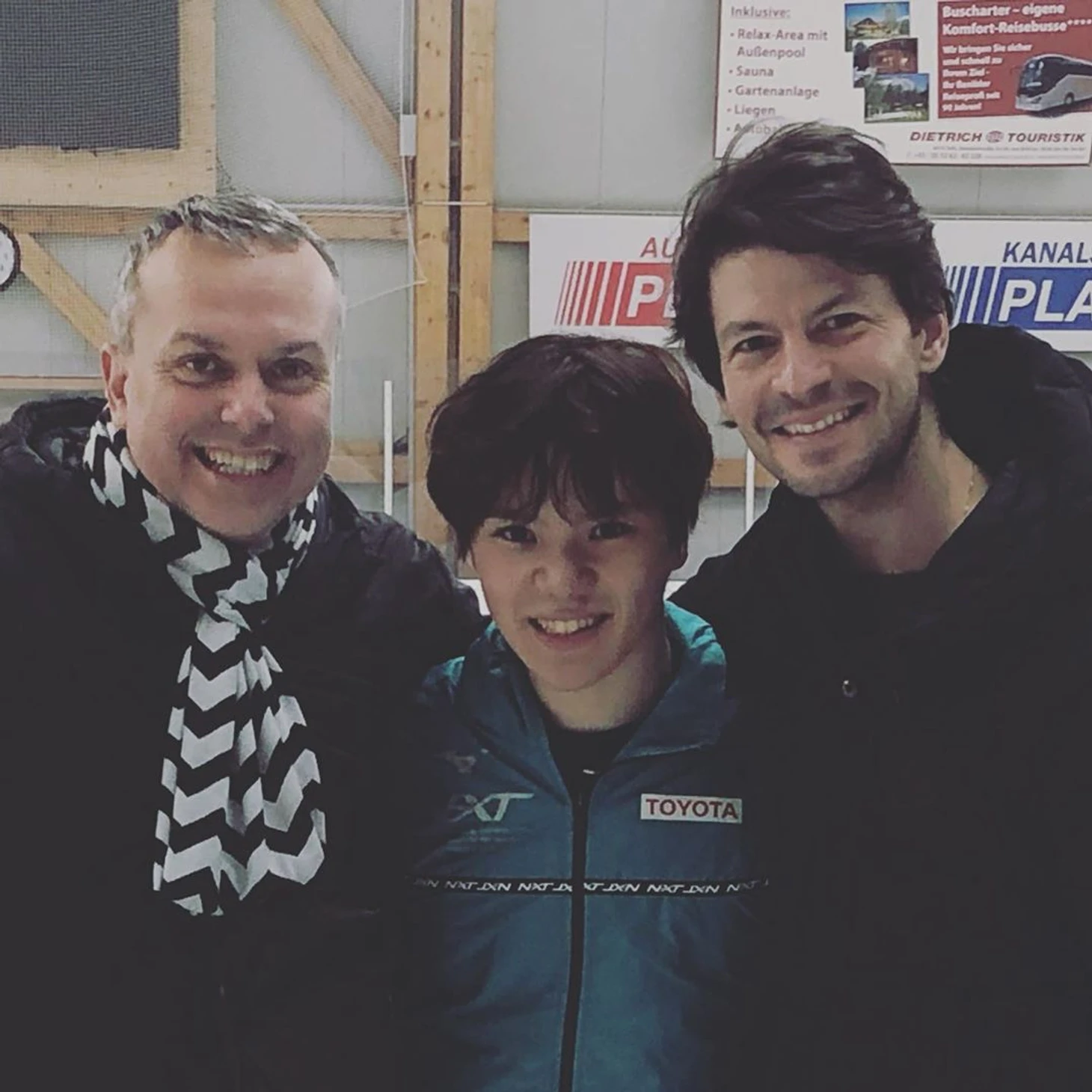 Шома Уно, Стефан Ламбьель и Дэвид Уилсон в городе Тельфс (Австрия), январь 2020го (источник)