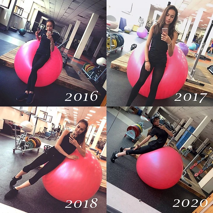 Автор сказала, что в 2019 году такого фото не было, но мысль не продолжила. Т.е. каждый год на сборах Алина делает фото с розовым мячом. В 2018 году она уже подписывала фото «По традиции...». Так почему в 2019 году не было традиционного фото? И почему в 2020 году оно есть? Представьте, что розовый мяч символизирует решительный настрой на сезон и получите ответ.