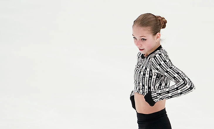 4. Александра Трусова заметно выросла и выглядит совершенно другой (говорит, что рост не измеряла). Неожиданно чувственный образ – Appassionata от Secret Garden, Саша рада медленной музыке, хочет показать себя с другой стороны.