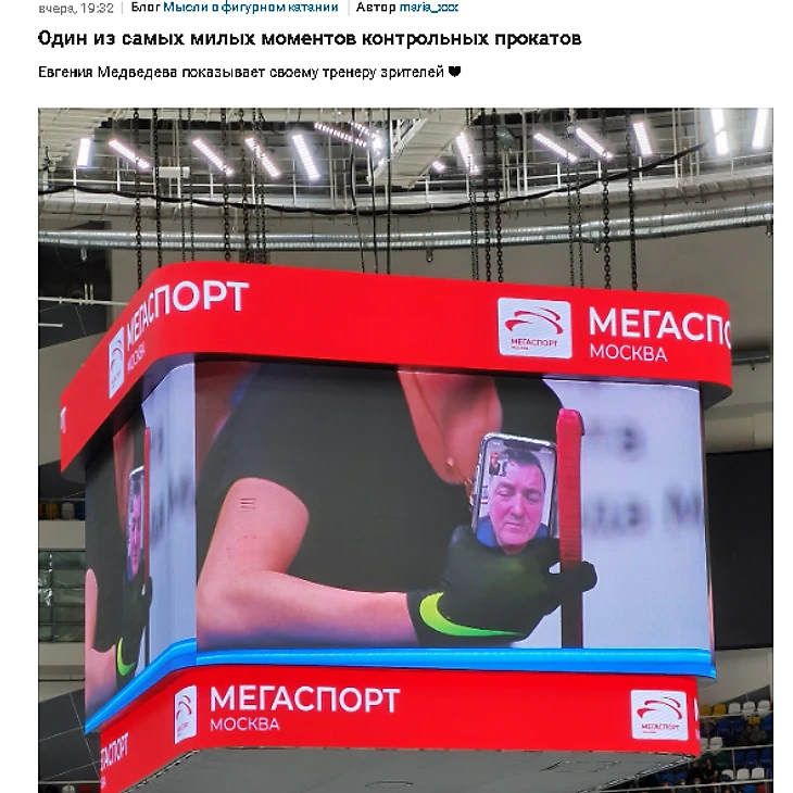 Среди многочисленных постов, освещающих проходившие 12 и 13 сентября на главной арене "Мегаспорта" контрольные прокаты фигуристов, моё внимание обратил на себя следующий: