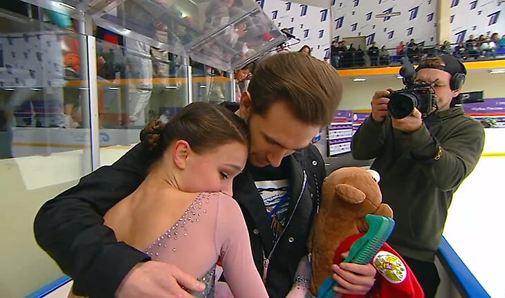 Спектакль Глейхенгауза во время проката Щербаковой: кричал «давай!», бил чехлом от коньков о борт, прятался за игрушкой