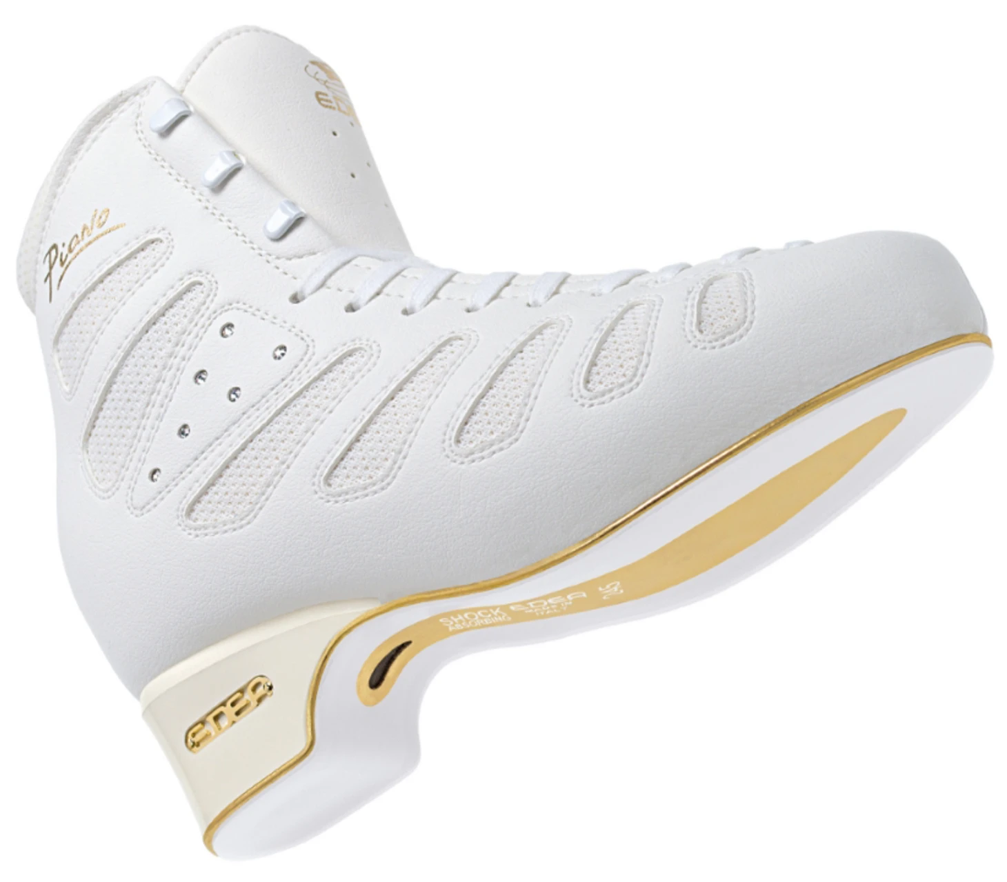Менее заметно колдовство разработчиков с подошвами. Например, пластиковая подошва, которая существенно отличается от классических подошв фигурных ботинок из натуральной многослойной кожи. Она изготавливается из высокотехнологичных облегченных композитных материалов, которые имеют ряд неоспоримых преимуществ перед классической подошвой фигурного ботинка из натуральных материалов.