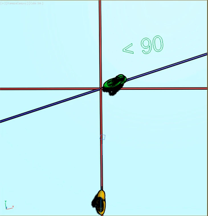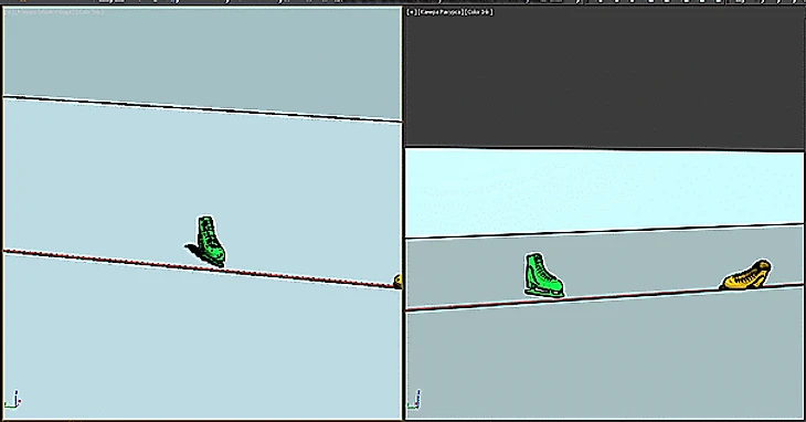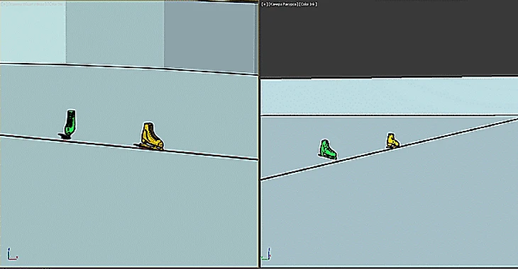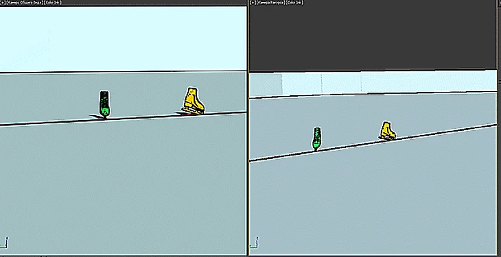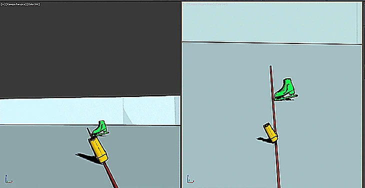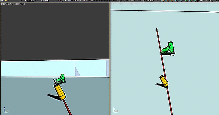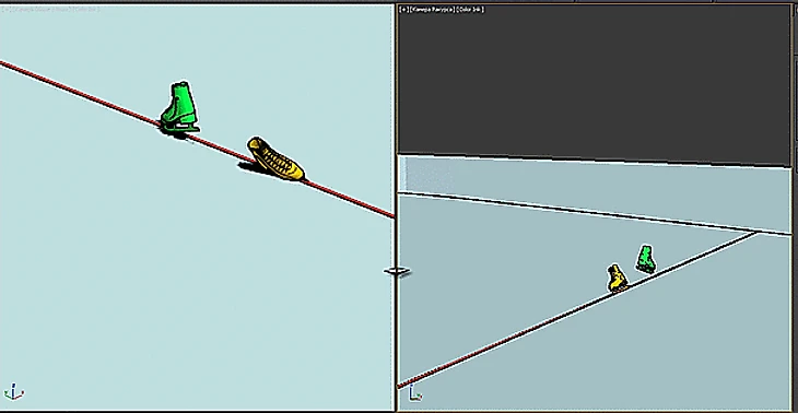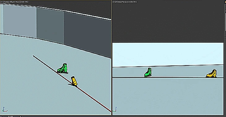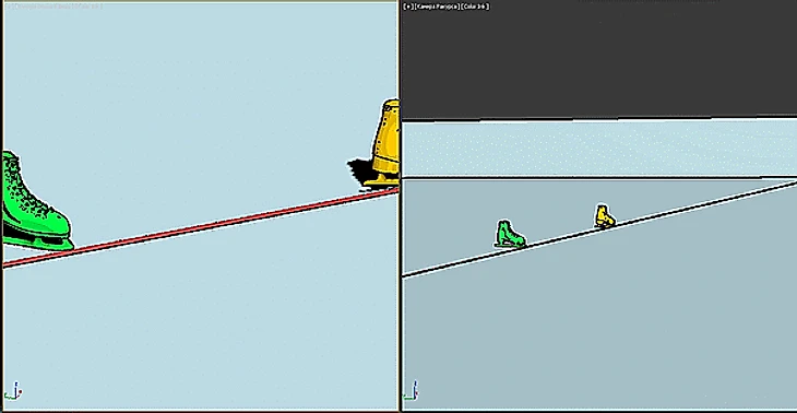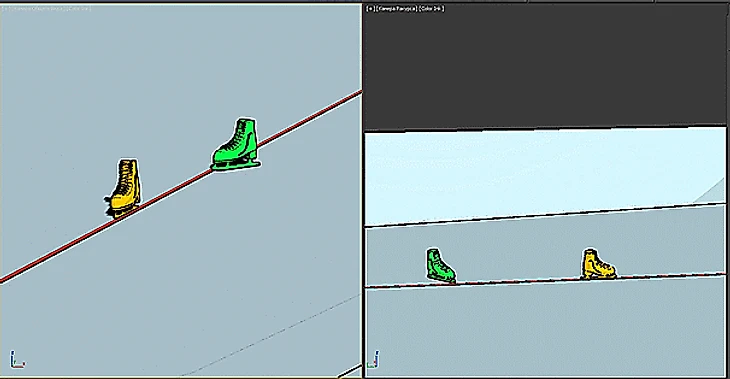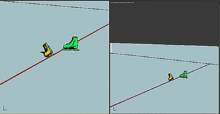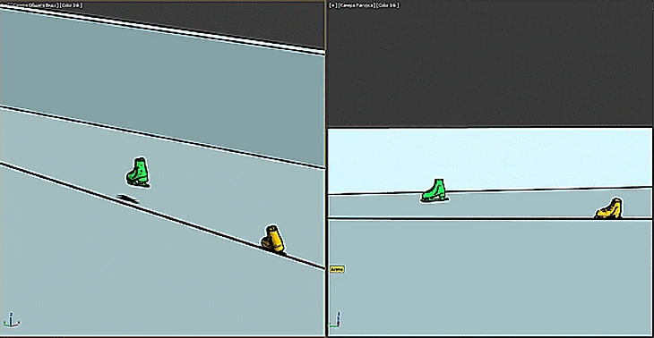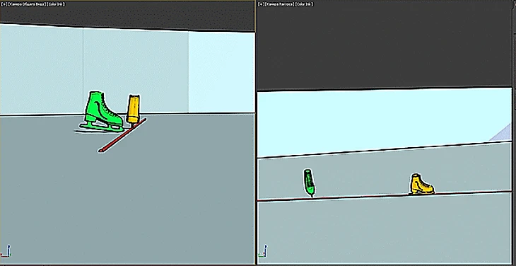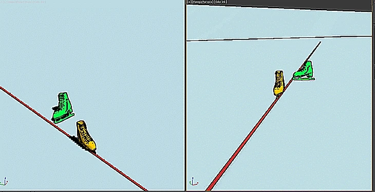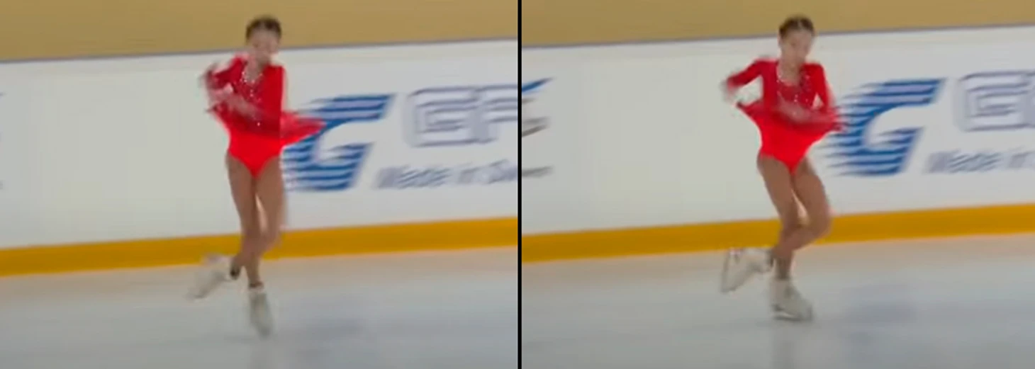 Заднюю часть конька не видно, ясно только, что она правее передней. Но следующий кадр показывает небольшой наклон и небольшой угол, который отличает кадры: