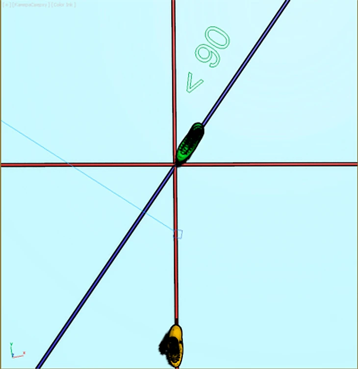 Даже здесь недокрут вроде всё же меньше 90 градусов. Хотя достаточно большой. Ну а если считать приземлением всё же следующий кадр, то получим и вовсе вот что: