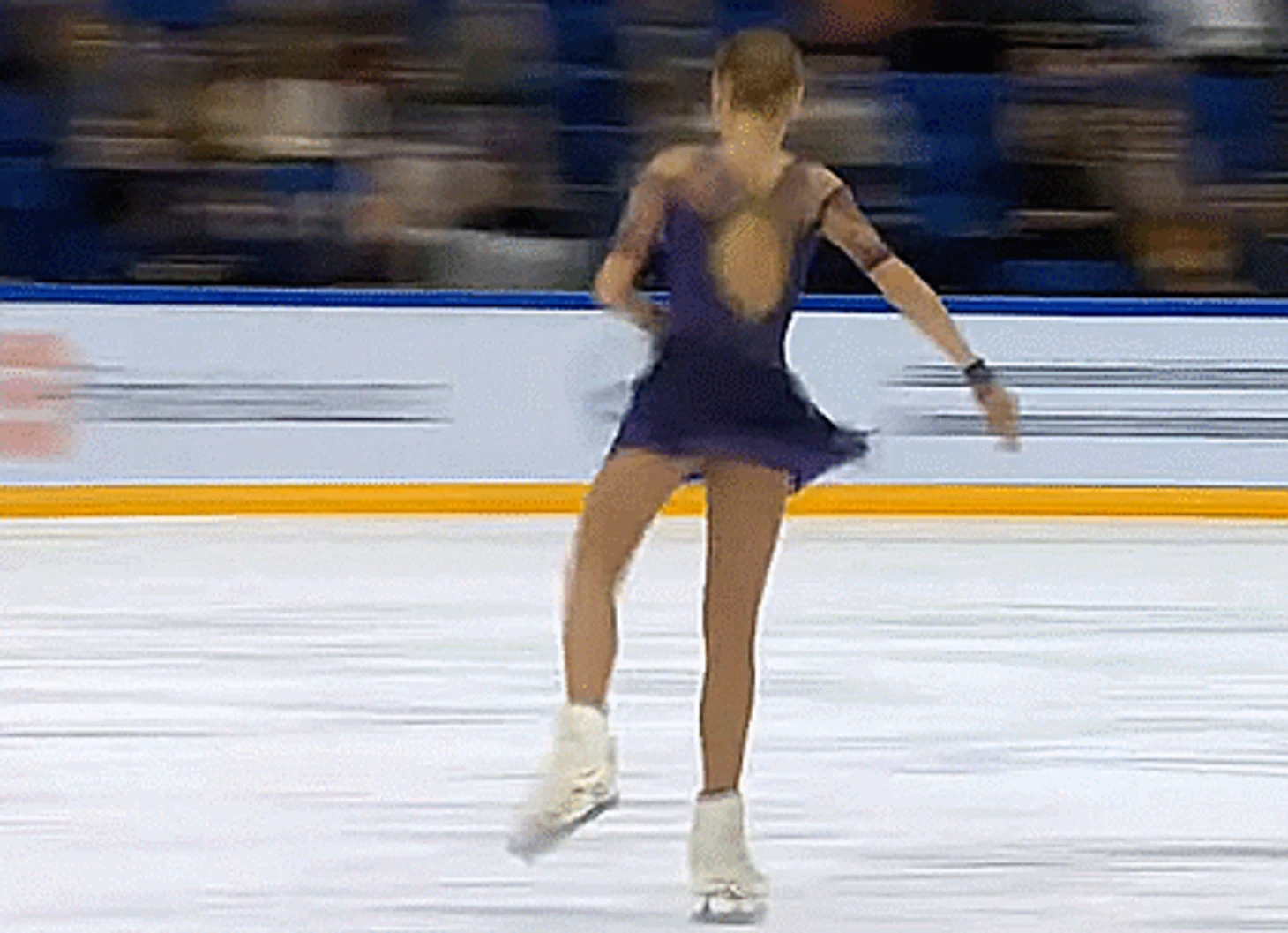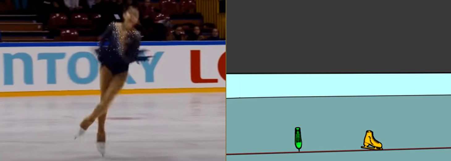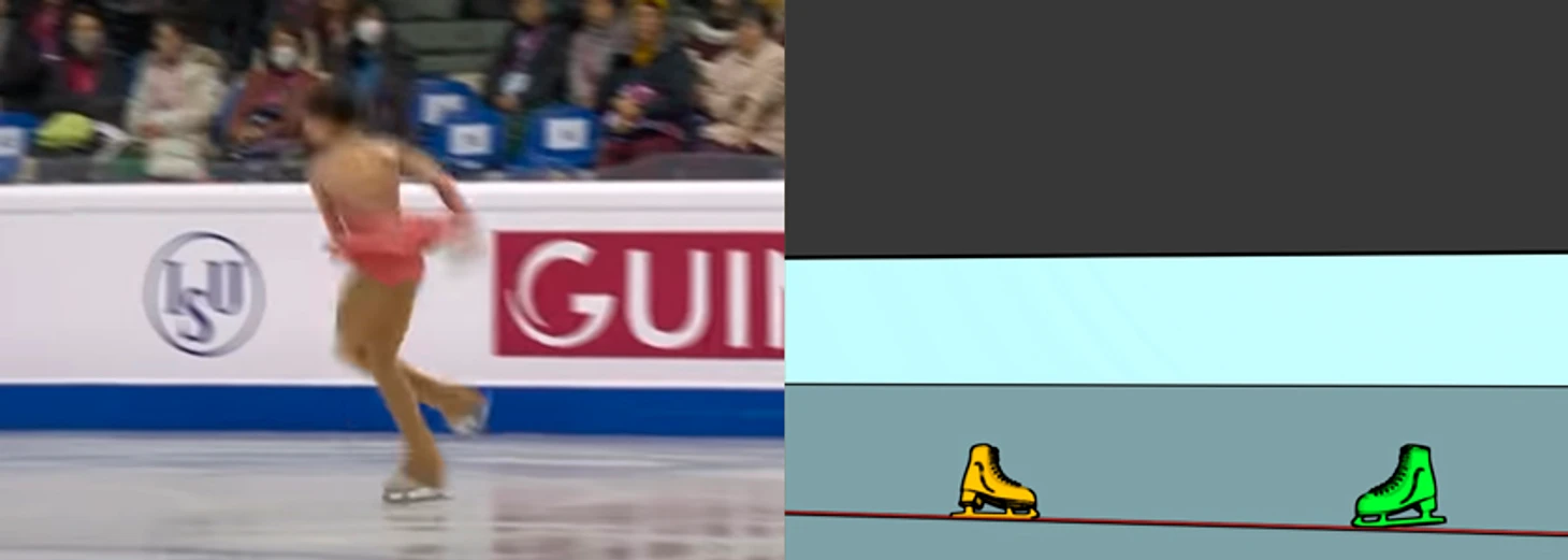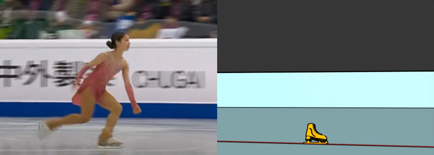Так как касание льда уже было, скорость частично была погашена, и к следующему кадру Алёна прокрутила совсем небольшой угол.