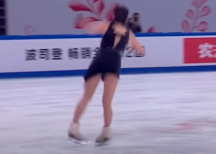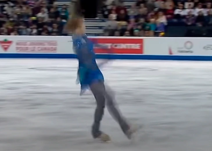 Дальше Алиса Лю. И снова тот самый сверхбыстрокруточный 4Л, который на самом то деле получился удачно. С ЭГП в Польше. Фиолетовый цвет.