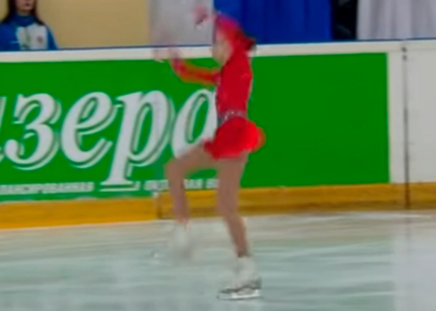 Идём дальше. А дальше - Софья Акатьева. И тот самый четверной тулуп с Первенства, недокрут на котором я уже разбирал. Сольный. Так что начало уже готово. Цвет - фиолетовый.