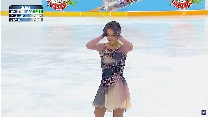 Усачева, у которой номер без ультра-си (четверные прыжки и тройной аксель), ошиблась уже в финале: на каскаде тройной флип-тройной тулуп второй прыжок не получился – Даша упала и сбилась с ритма.