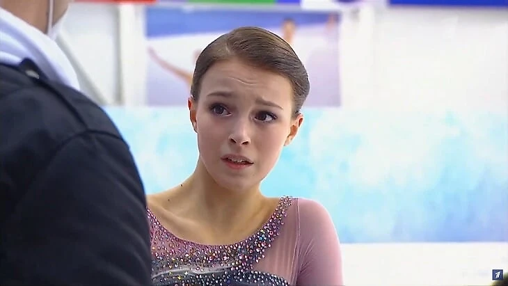 Еще не покинув лед, Аня морщилась и еле сдерживала слезы, а парой минут спустя – в кисс-энд-крае – с виноватым видом опускала голову.