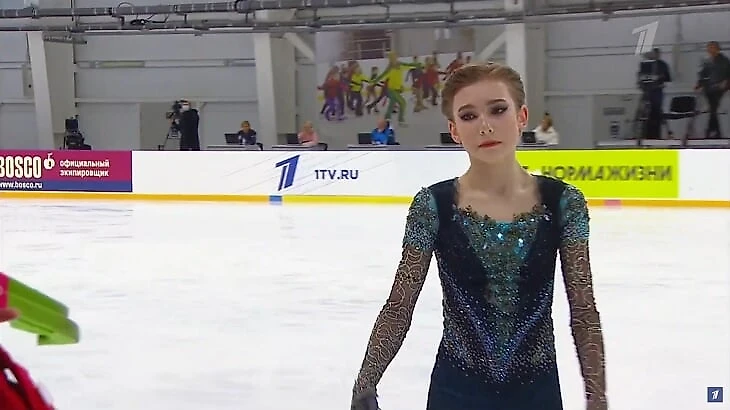 У бортика ее коротко успокоил хореограф Даниил Глейхенгауз; в кисс-энд-крае юниорка дожидалась оценок в одиночестве – Глейхенгауз и Сергей Дудаков уже готовили к прокату Щербакову, а Этери Тутберидзе в Сочи не приехала.