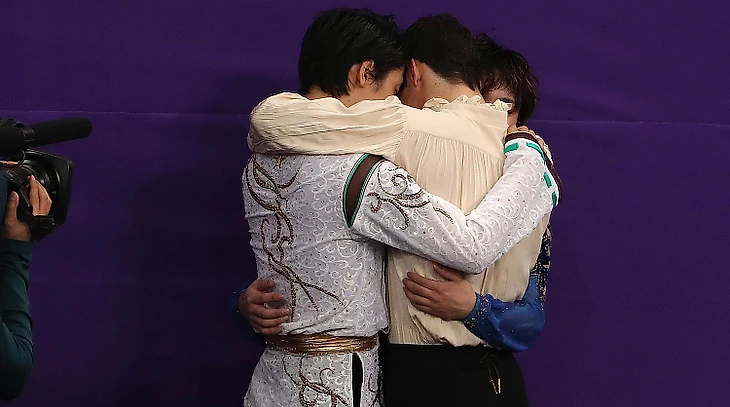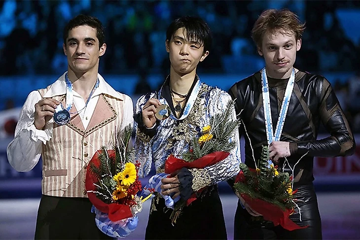 - Когда ты действительно рад быть на пьедестале именно в такой компании :) Юдзуру Ханю, Хавьер Фернандес и Шома Уно.