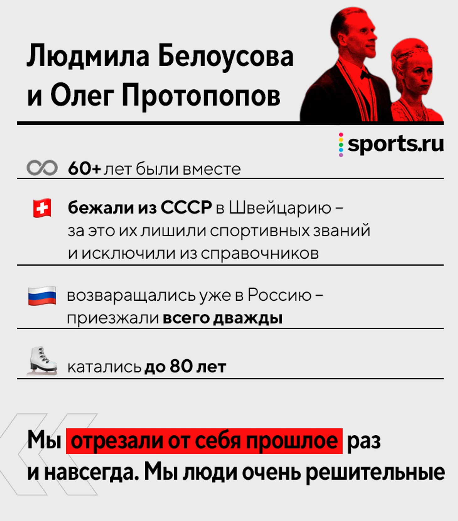 В Швейцарии сбежавшим помогли друзья – они вызывали полицию, и бывшие фигуристы попросили политического убежища. В Европе сразу заинтересовались историей Белоусовой и Протопопова, но те в каждом интервью повторяли: причины не политические, паре нужны только лед и возможность кататься, которой их лишают в Союзе.