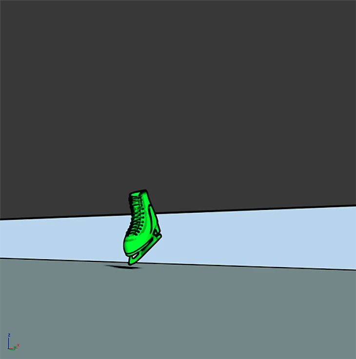 Конёк в этом кадре вряд ли вообще касается льда, но, как минимум, опоры здесь нет. Выглядит это примерно так: