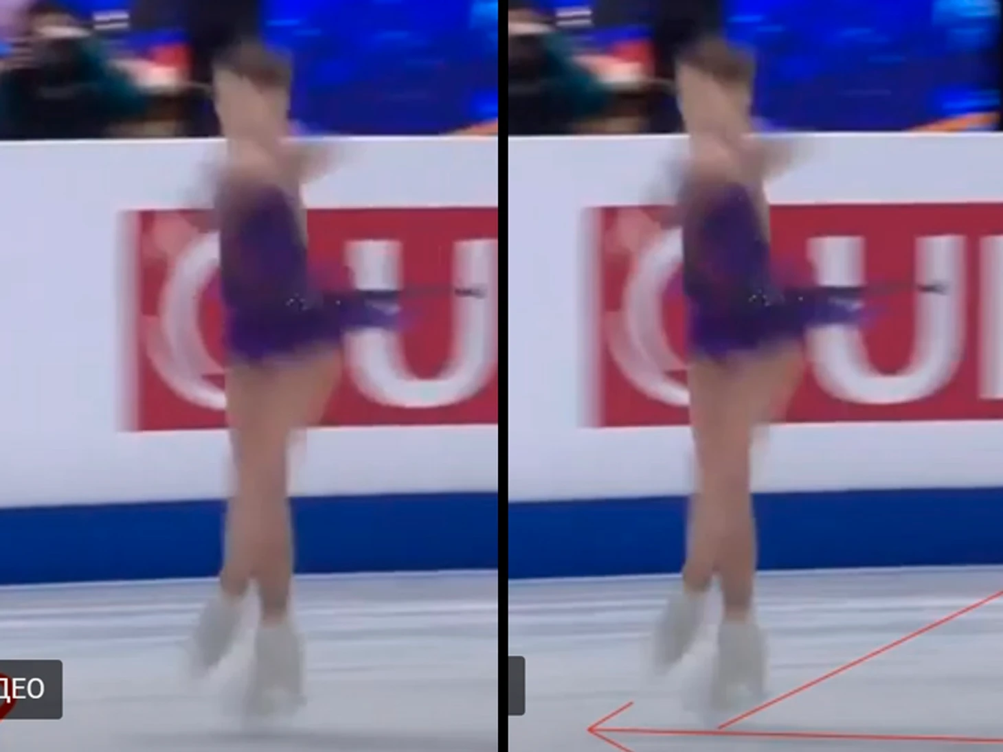 Кто-то захотел показать, что судьи ошиблись и пропустили "галочный" недокрут на трикселе Косторной с ЧЕ. И вот была создана некая гифка, где нарисованы некие стрелочки, подписаны надписи... Но стоит чуть приглядеться, как становятся видны некоторые любопытные моменты.