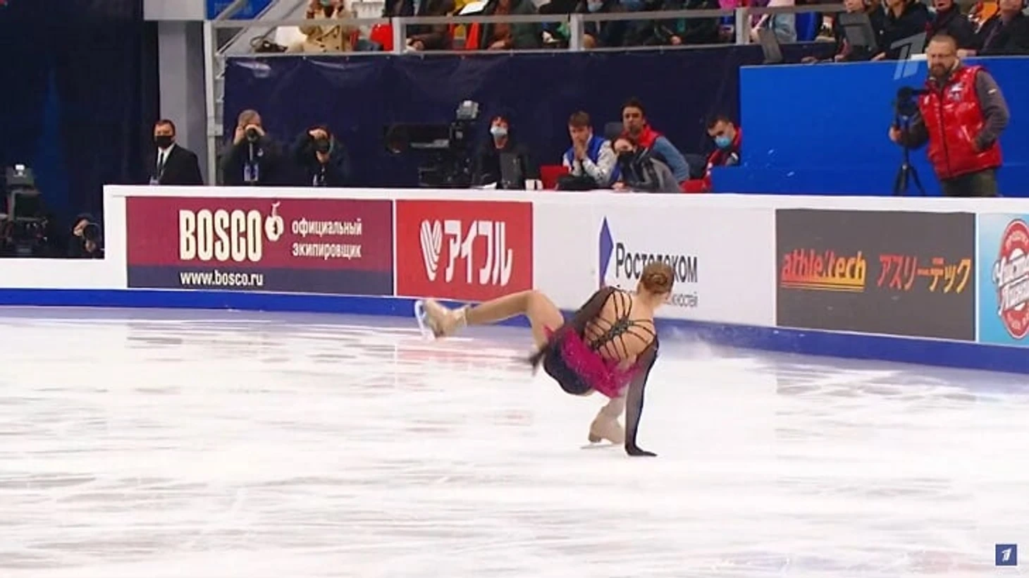 На четверном лутце у нее будто заплелись ноги – снова падение.