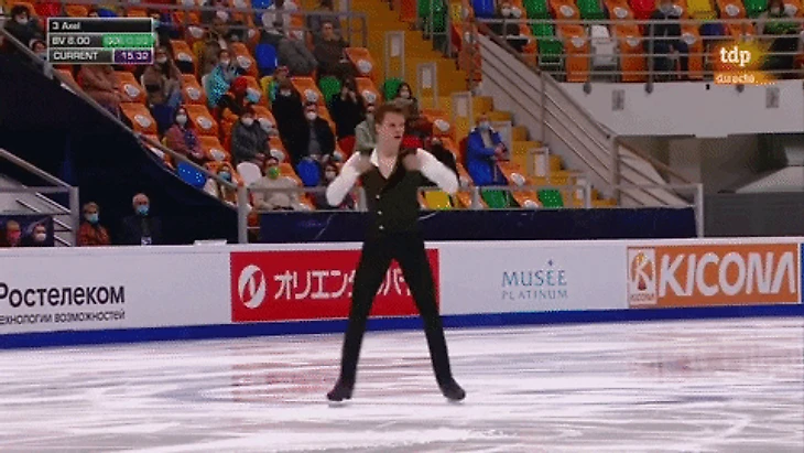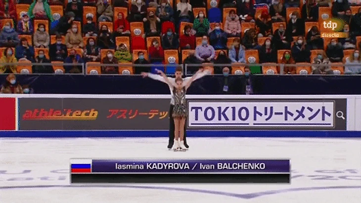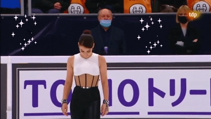 Насте Гуляковой спасибо за бодрость программ и музык. Косторной за музыку спасибо не скажу. Сейчас меня покусают и закидают помидорами поклонники творчества этой Билли Айриш? Айлиш? Но на льду совсем не звучит. На льду кто-то гундосит.