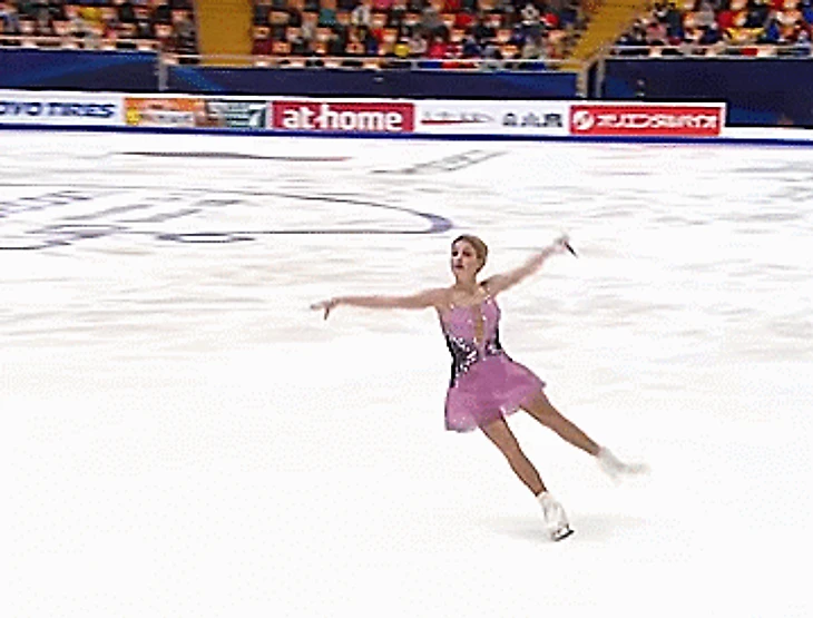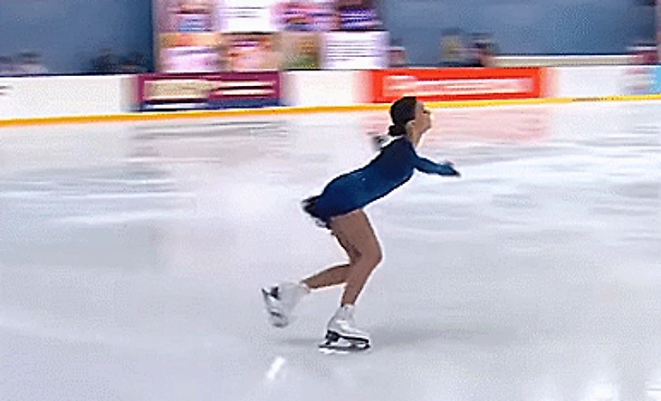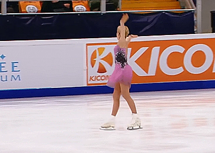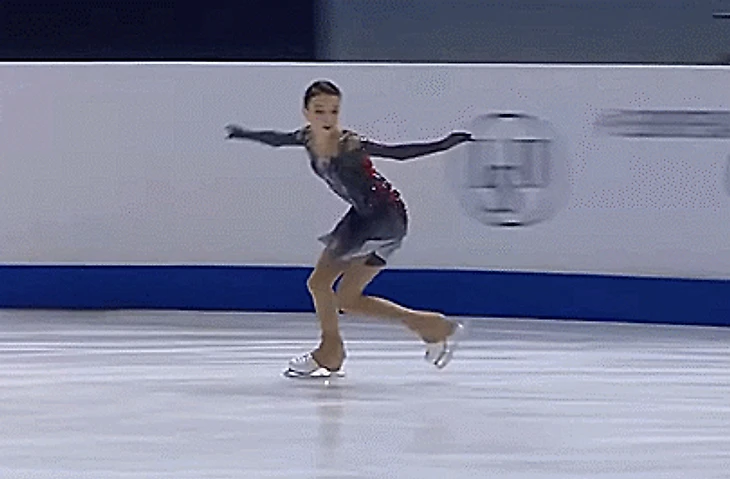 Или вот пример заходов на каскад после набора скорости в коротких программах Ани Щербаковой. Как была спираль в Парфюмере, так и осталась - только теперь Аня не захватывает рукой конёк.