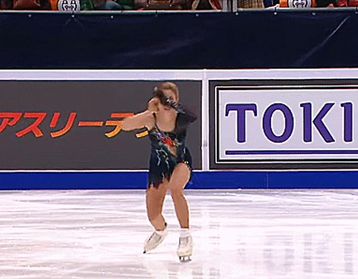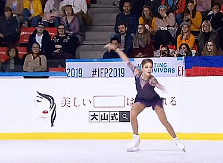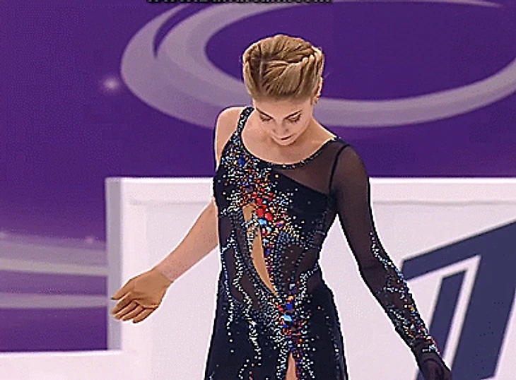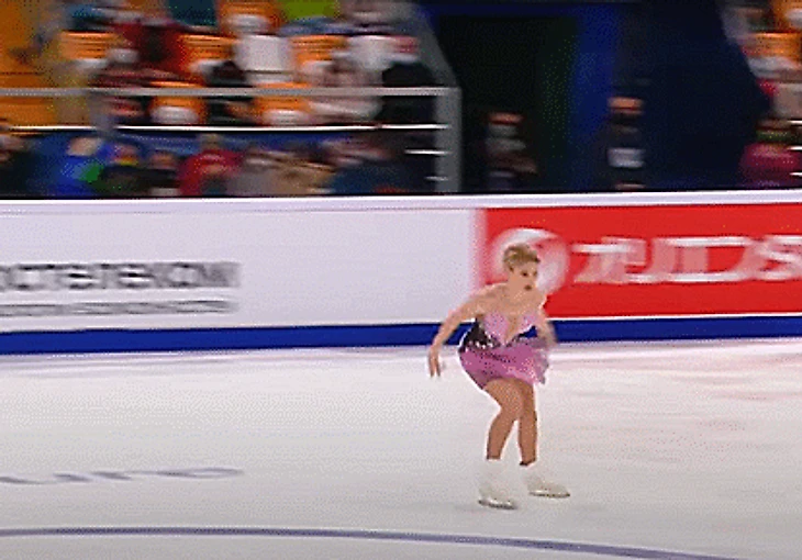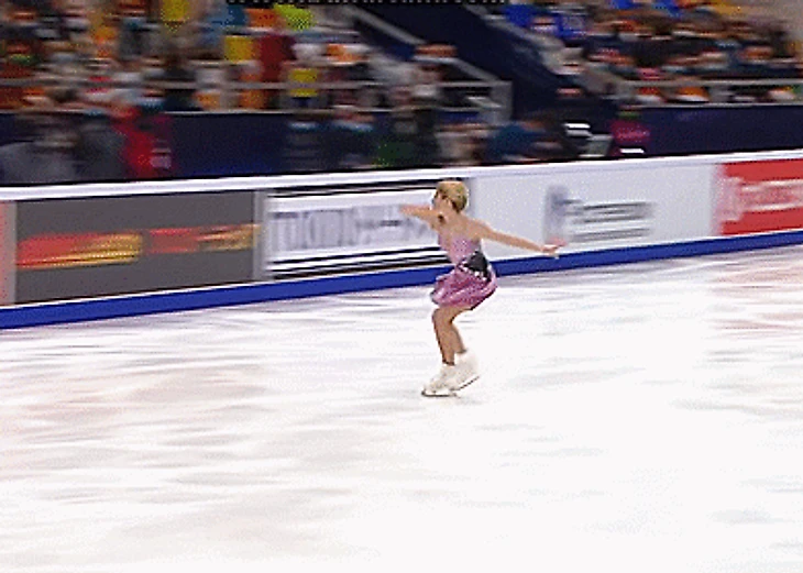 К моменту выезда с 3Л-2Т проходит уже 44 секунды - и Алёна показывает минимум в связках к этому моменту. Но! Не стоит забывать, что программа задумывалась под ультра-си. А это уже другое дело. Вот даже взглянуть на Камилу Валиеву: