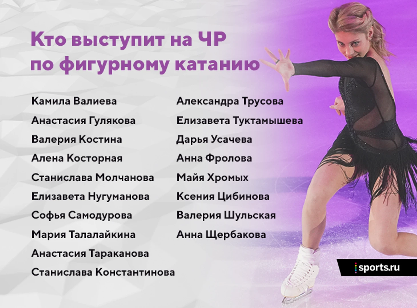 • Алена Косторная, Елизавета Туктамышева и Анастасия Гулякова пропустили пятый этап Кубка России по медицинским причинам, но в состав участников ЧР все же вошли – решение вроде бы очевидное и логичное, если остановиться только на нем.