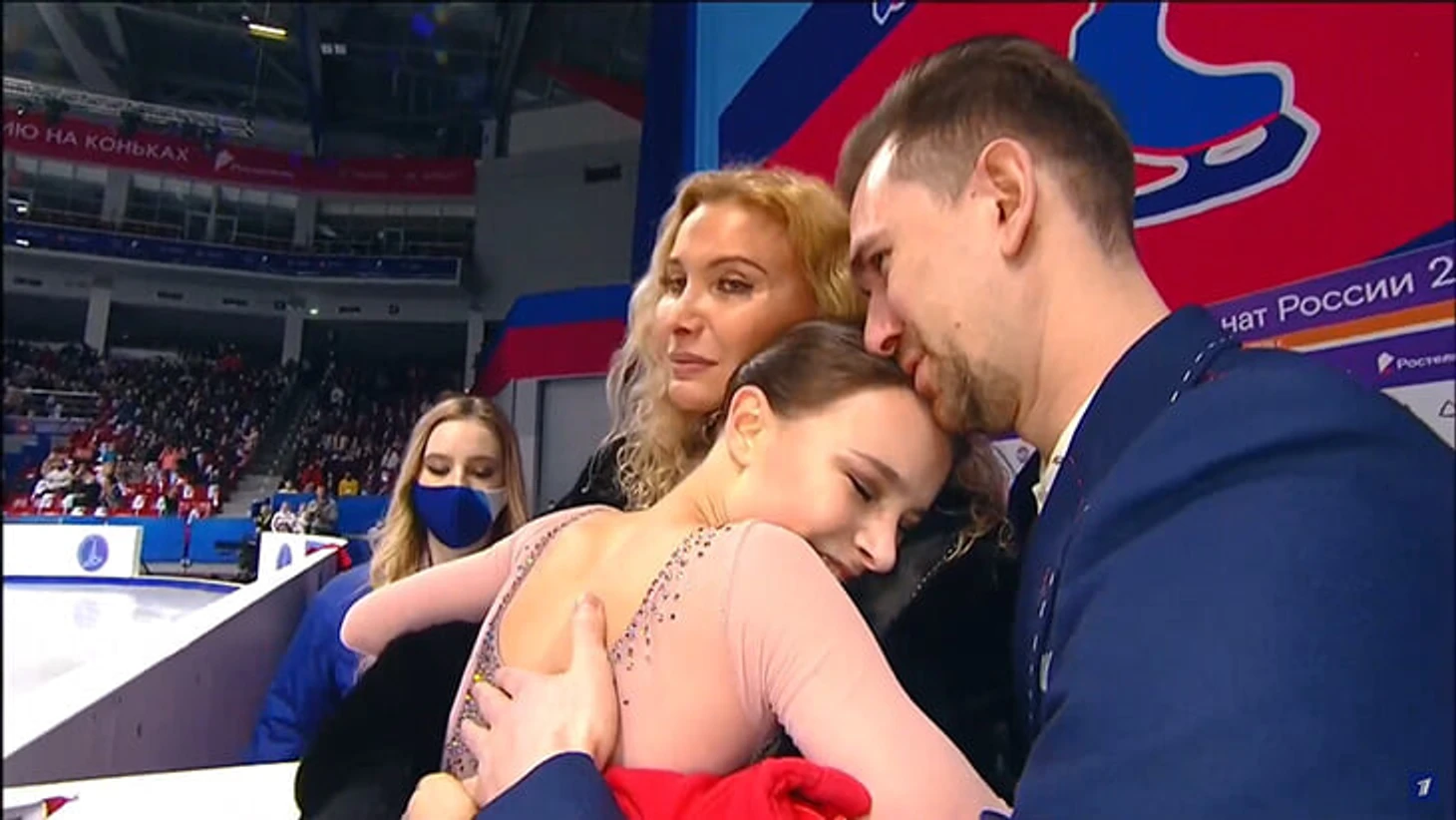 Этери Тутберидзе и Даниил Глейхенгауз встречали ее со слезами.